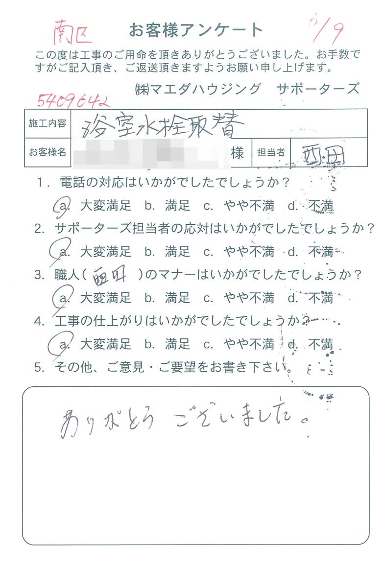 南区 浴室水栓取替