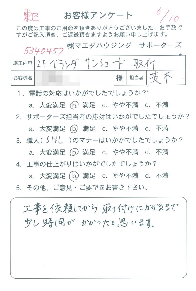 工事を依頼してから取り付けにかかるまで 少し時間がかかったと思います。