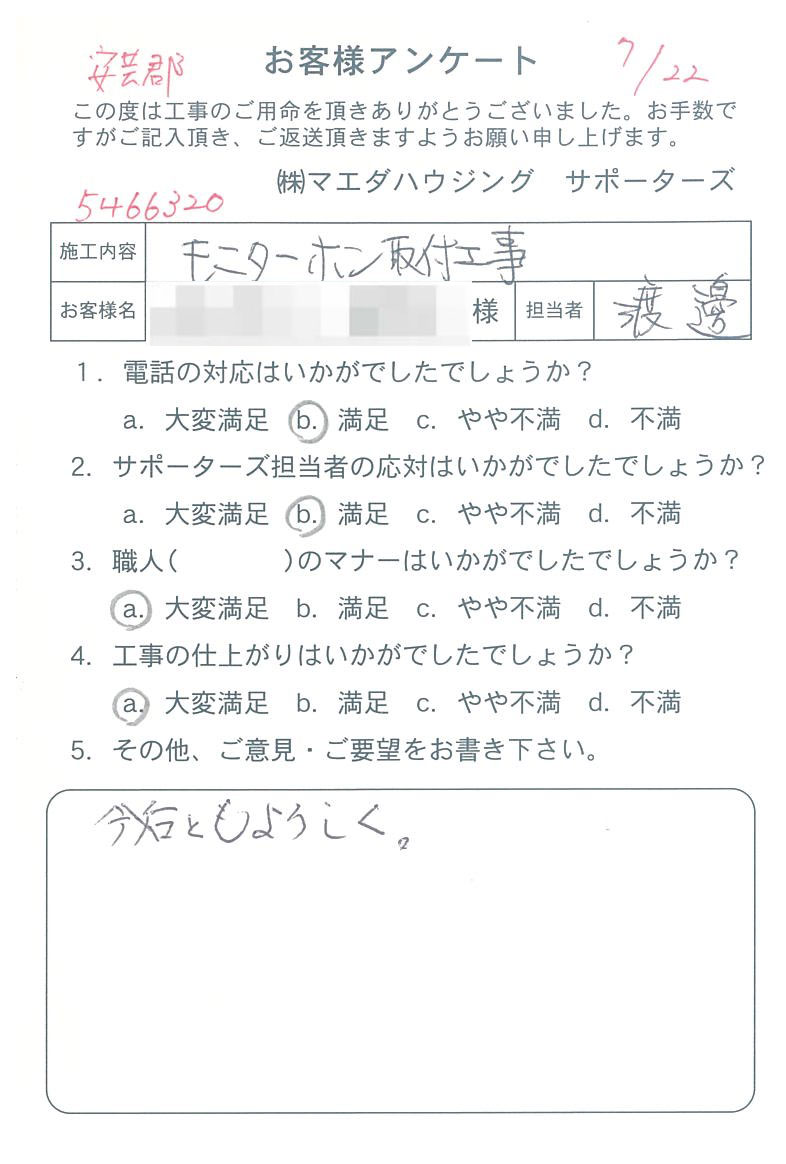 安芸郡 モニターホン取付工事