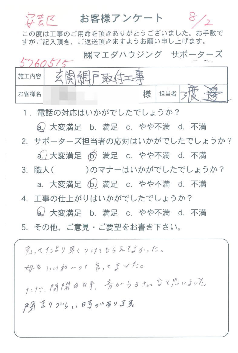 安芸区 玄関網戸取付工事