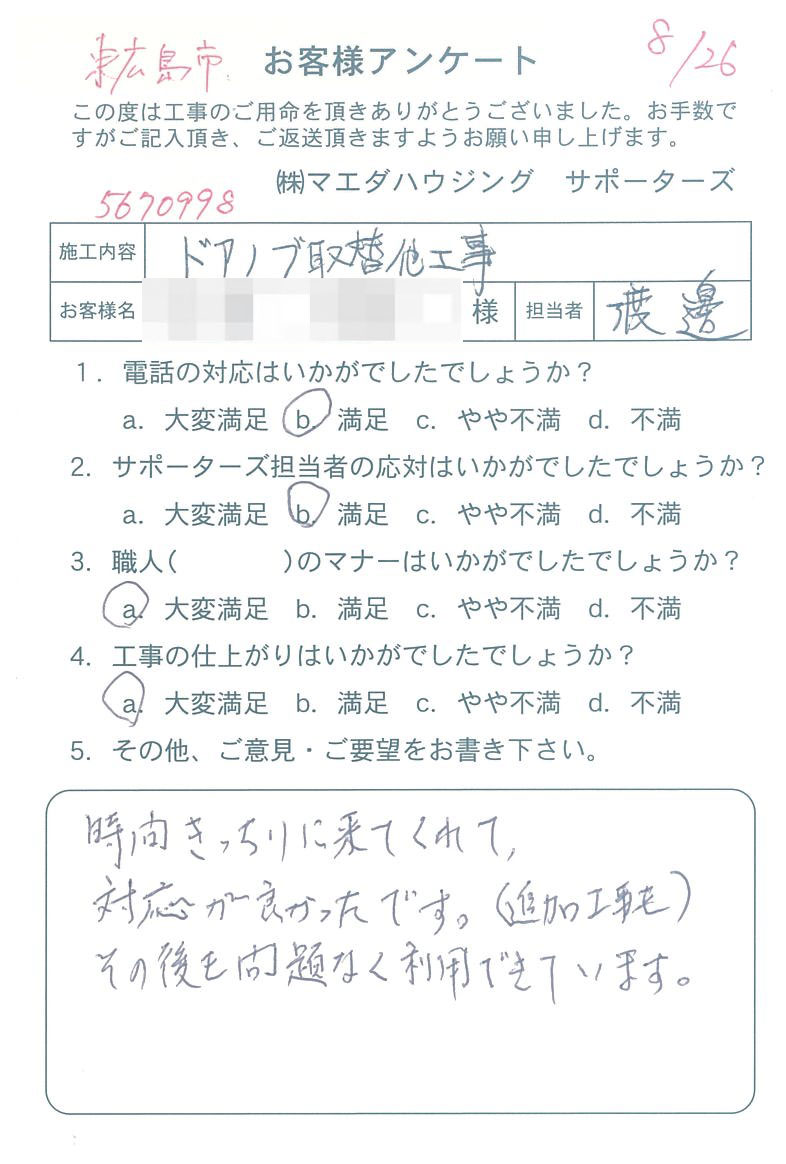 時間きっちりに来てくれて、対応が良かったです。(追加工事も)その後も問題なく利用できています。