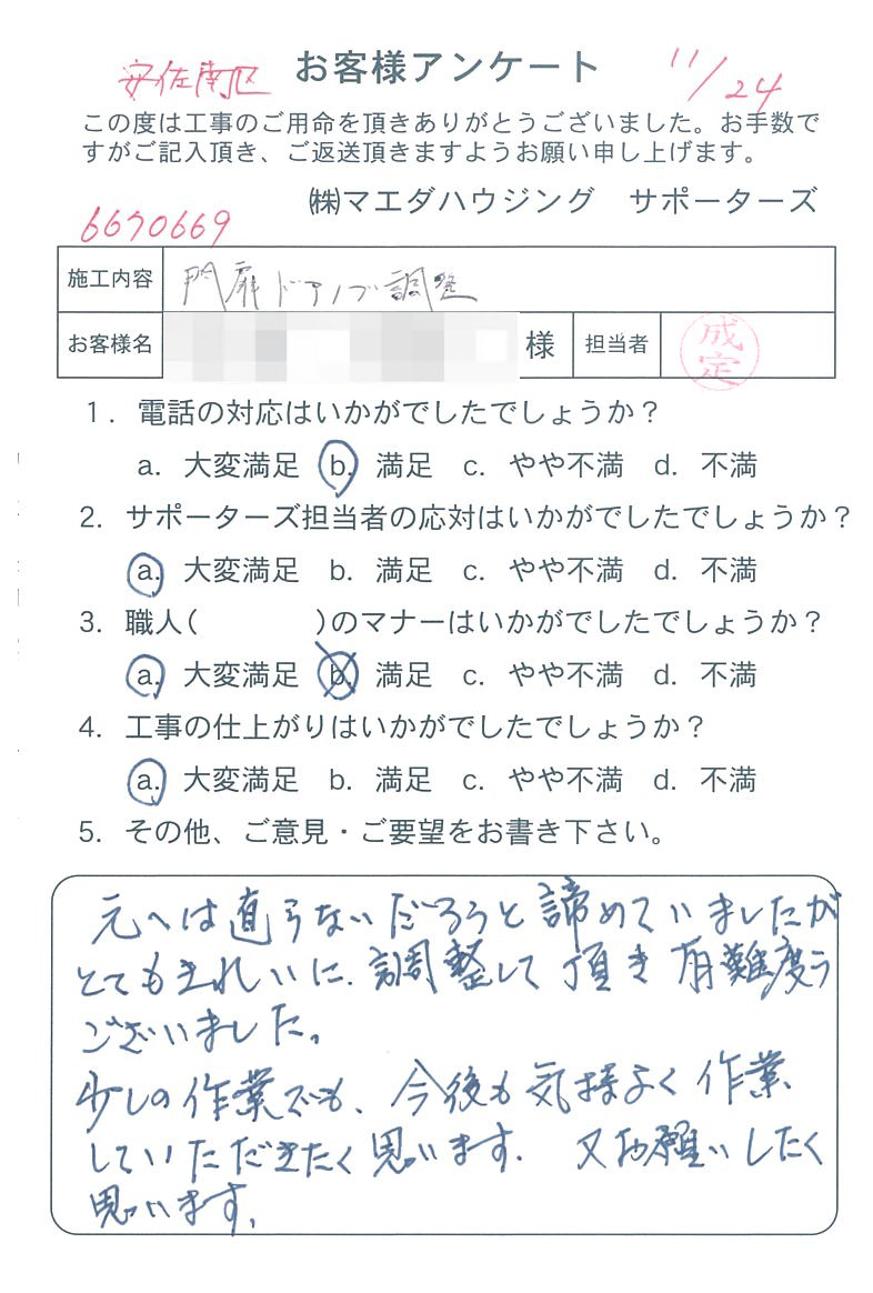 元へは直らないだろうと諦めていましたが、とてもきれいに調整して頂き 有難うございました。