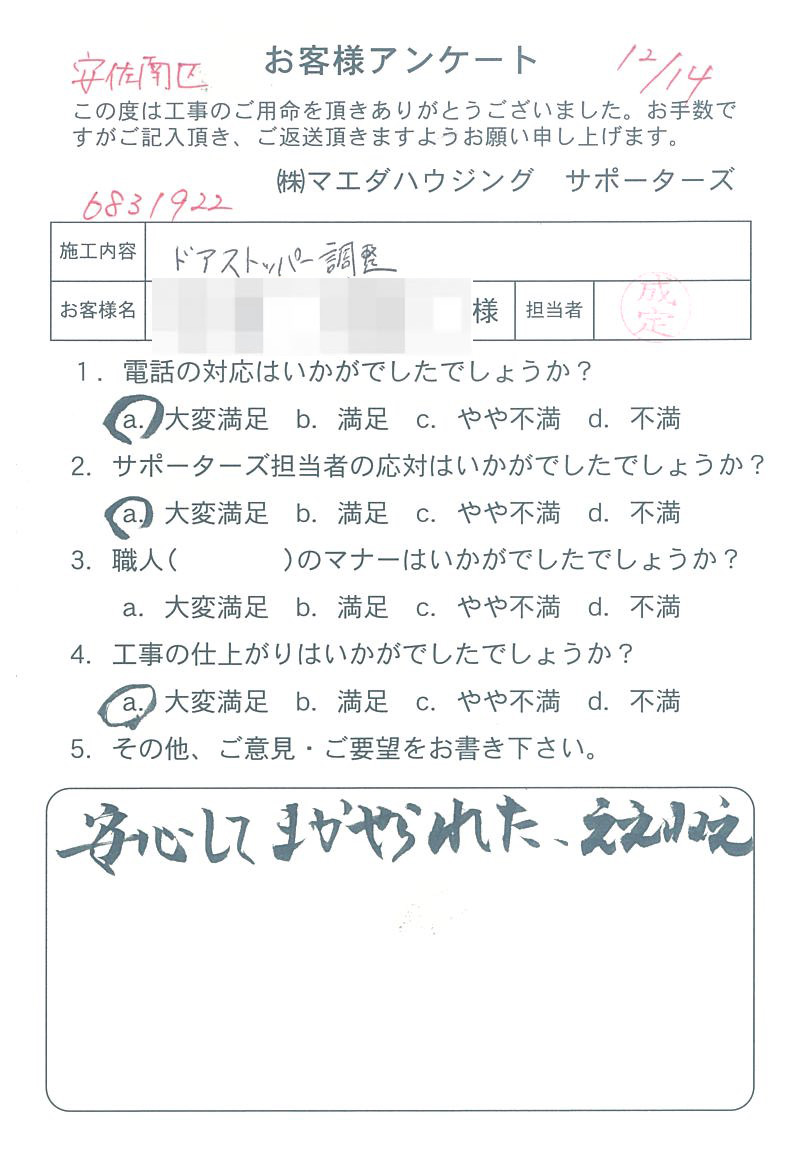 安佐南区 ドアストッパー調整