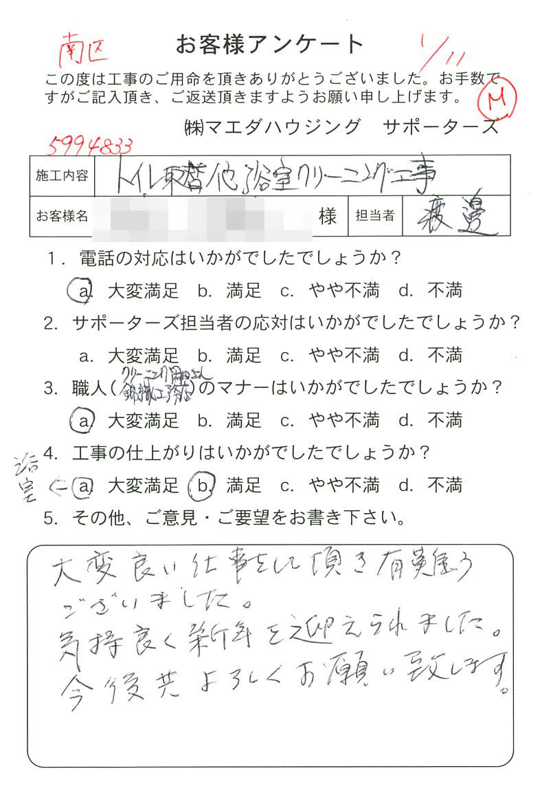 大変良い仕事をして頂き、有難うございました。気持良く新年を迎えられました。