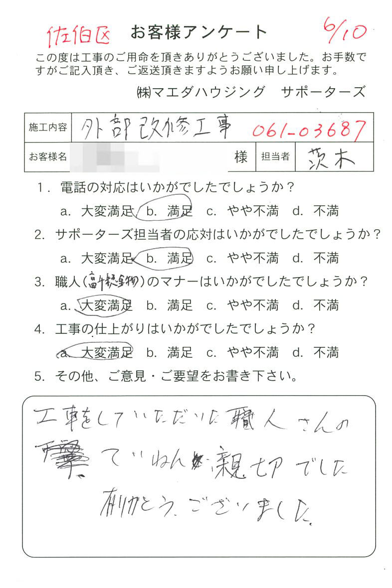 工事をしていただいた職人さんがていねい、親切でした。有りがとうございました。