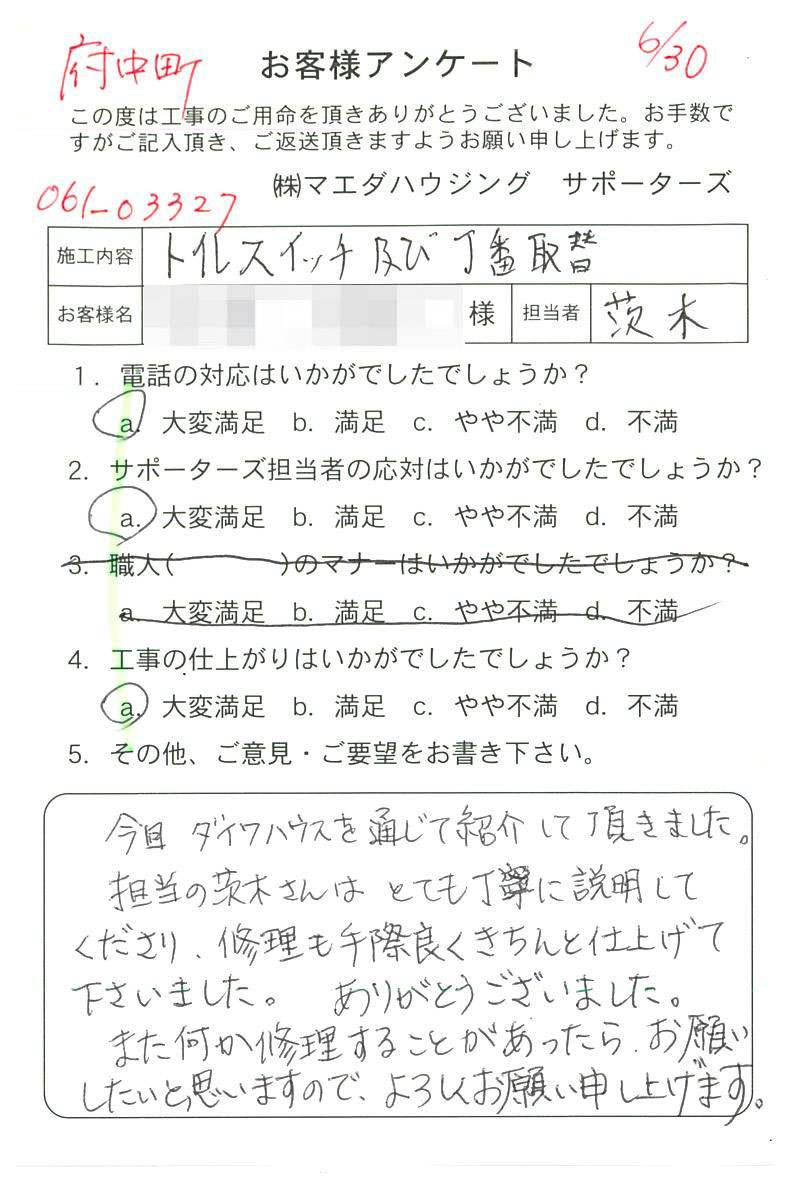 - 府中町 トイレスイッチ及び丁番取替