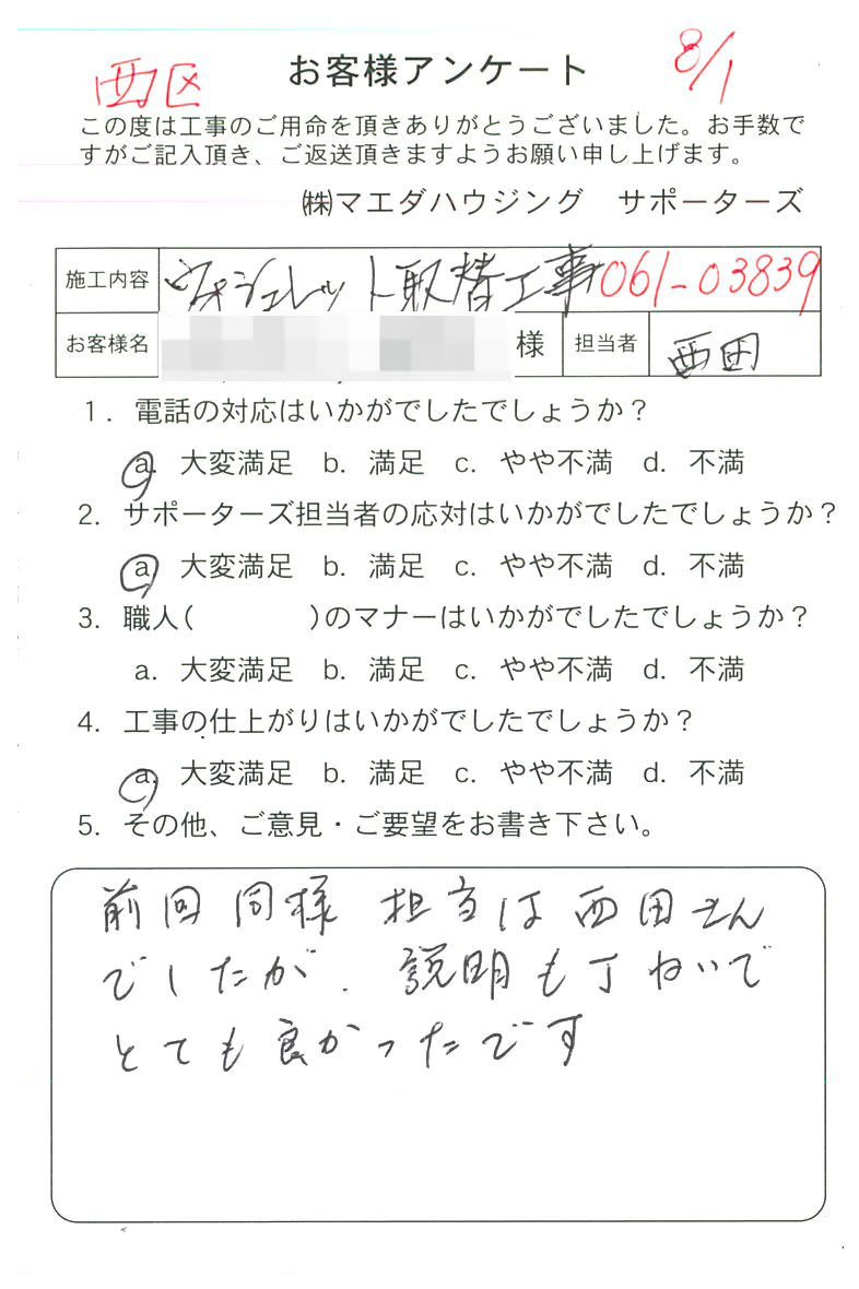 前回同様 担当は西田さんでしたが、説明も丁ねいでとても良かったです。