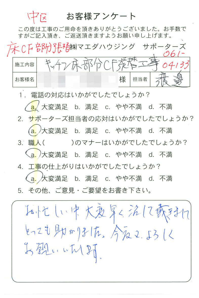 お忙しい中、大変早く治して戴きましてとっても助かりました。今度又、よろしくお願いいたします。