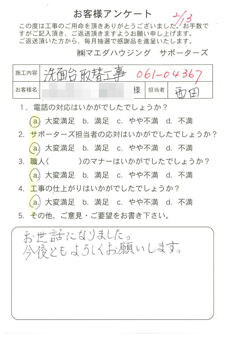 お世話になりました。今後ともよろしくお願いします。