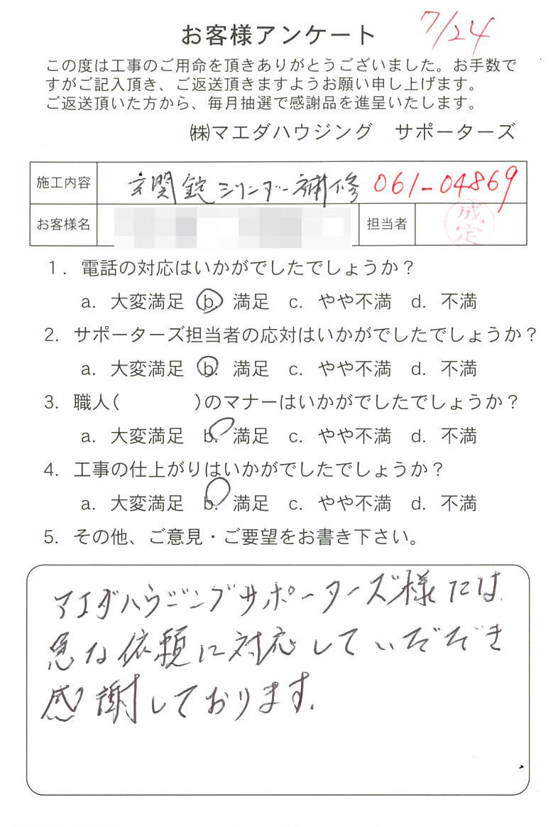 マエダハウジングサポーターズ様には、急な依頼に対応していただき感謝しております。