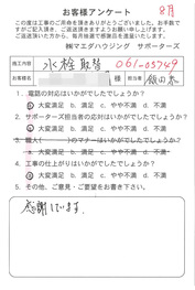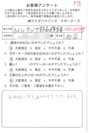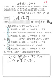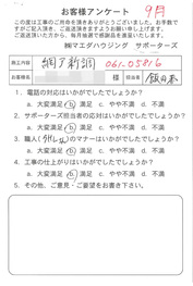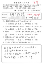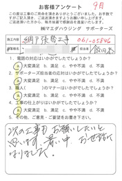工事後、直接お客様にご記入いただいたアンケートを随時掲載!生の声をご紹介いたします。