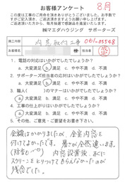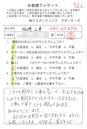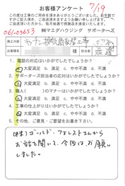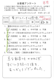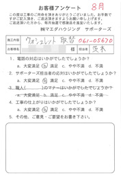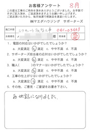 工事後、直接お客様にご記入いただいたアンケートを随時掲載!生の声をご紹介いたします。