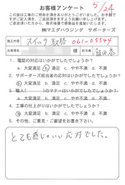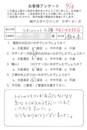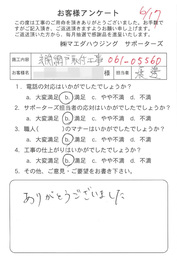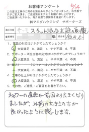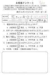 工事後、直接お客様にご記入いただいたアンケートを随時掲載!生の声をご紹介いたします。
