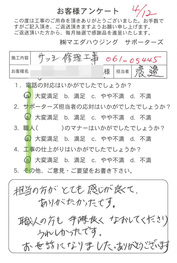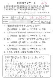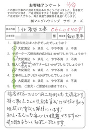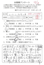 工事後、直接お客様にご記入いただいたアンケートを随時掲載!生の声をご紹介いたします。