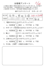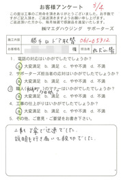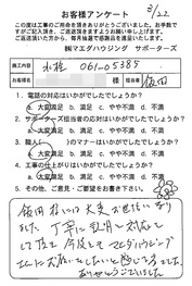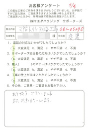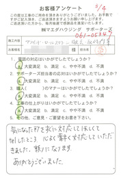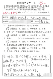 工事後、直接お客様にご記入いただいたアンケートを随時掲載!生の声をご紹介いたします。