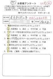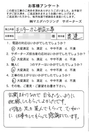 工事後、直接お客様にご記入いただいたアンケートを随時掲載!生の声をご紹介いたします。