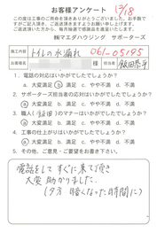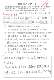工事後、直接お客様にご記入いただいたアンケートを随時掲載!生の声をご紹介いたします。
