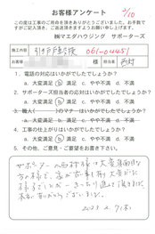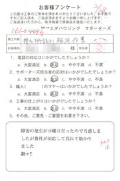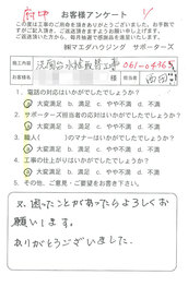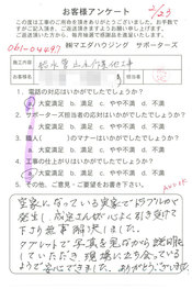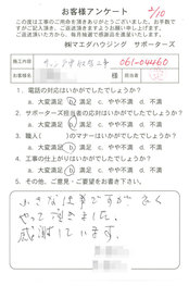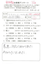 工事後、直接お客様にご記入いただいたアンケートを随時掲載!生の声をご紹介いたします。