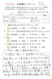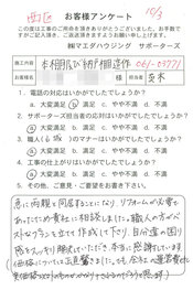 工事後、直接お客様にご記入いただいたアンケートを随時掲載!生の声をご紹介いたします。