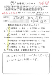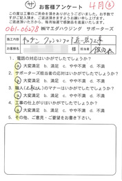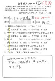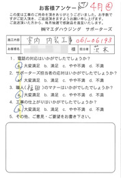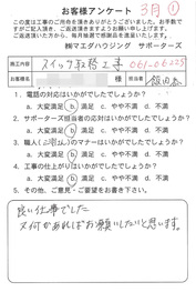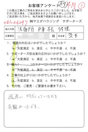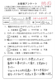 工事後、直接お客様にご記入いただいたアンケートを随時掲載!生の声をご紹介いたします。