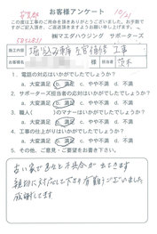 工事後、直接お客様にご記入いただいたアンケートを随時掲載!生の声をご紹介いたします。