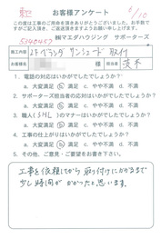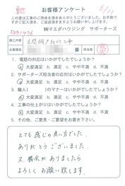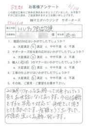 工事後、直接お客様にご記入いただいたアンケートを随時掲載!生の声をご紹介いたします。