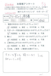 工事後、直接お客様にご記入いただいたアンケートを随時掲載!生の声をご紹介いたします。