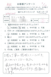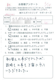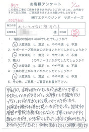 工事後、直接お客様にご記入いただいたアンケートを随時掲載!生の声をご紹介いたします。