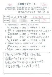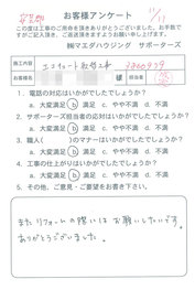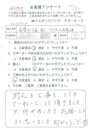 工事後、直接お客様にご記入いただいたアンケートを随時掲載!生の声をご紹介いたします。