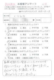工事後、直接お客様にご記入いただいたアンケートを随時掲載!生の声をご紹介いたします。