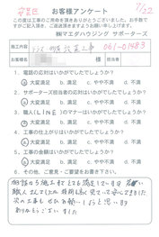 工事後、直接お客様にご記入いただいたアンケートを随時掲載!生の声をご紹介いたします。