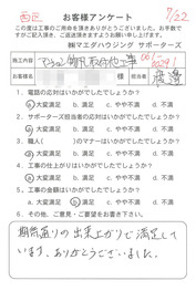 工事後、直接お客様にご記入いただいたアンケートを随時掲載!生の声をご紹介いたします。