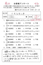 工事後、直接お客様にご記入いただいたアンケートを随時掲載!生の声をご紹介いたします。