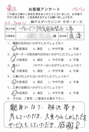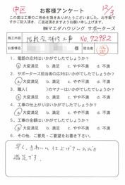 工事後、直接お客様にご記入いただいたアンケートを随時掲載!生の声をご紹介いたします。