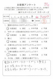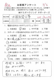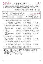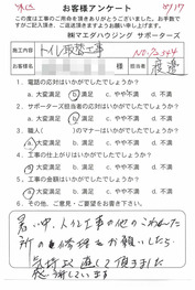 工事後、直接お客様にご記入いただいたアンケートを随時掲載!生の声をご紹介いたします。