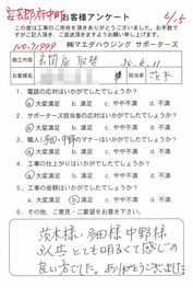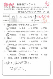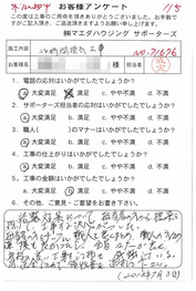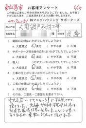 工事後、直接お客様にご記入いただいたアンケートを随時掲載!生の声をご紹介いたします。