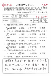 工事後、直接お客様にご記入いただいたアンケートを随時掲載!生の声をご紹介いたします。