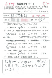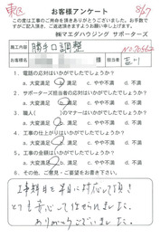 工事後、直接お客様にご記入いただいたアンケートを随時掲載!生の声をご紹介いたします。