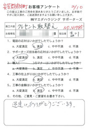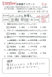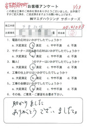 工事後、直接お客様にご記入いただいたアンケートを随時掲載!生の声をご紹介いたします。