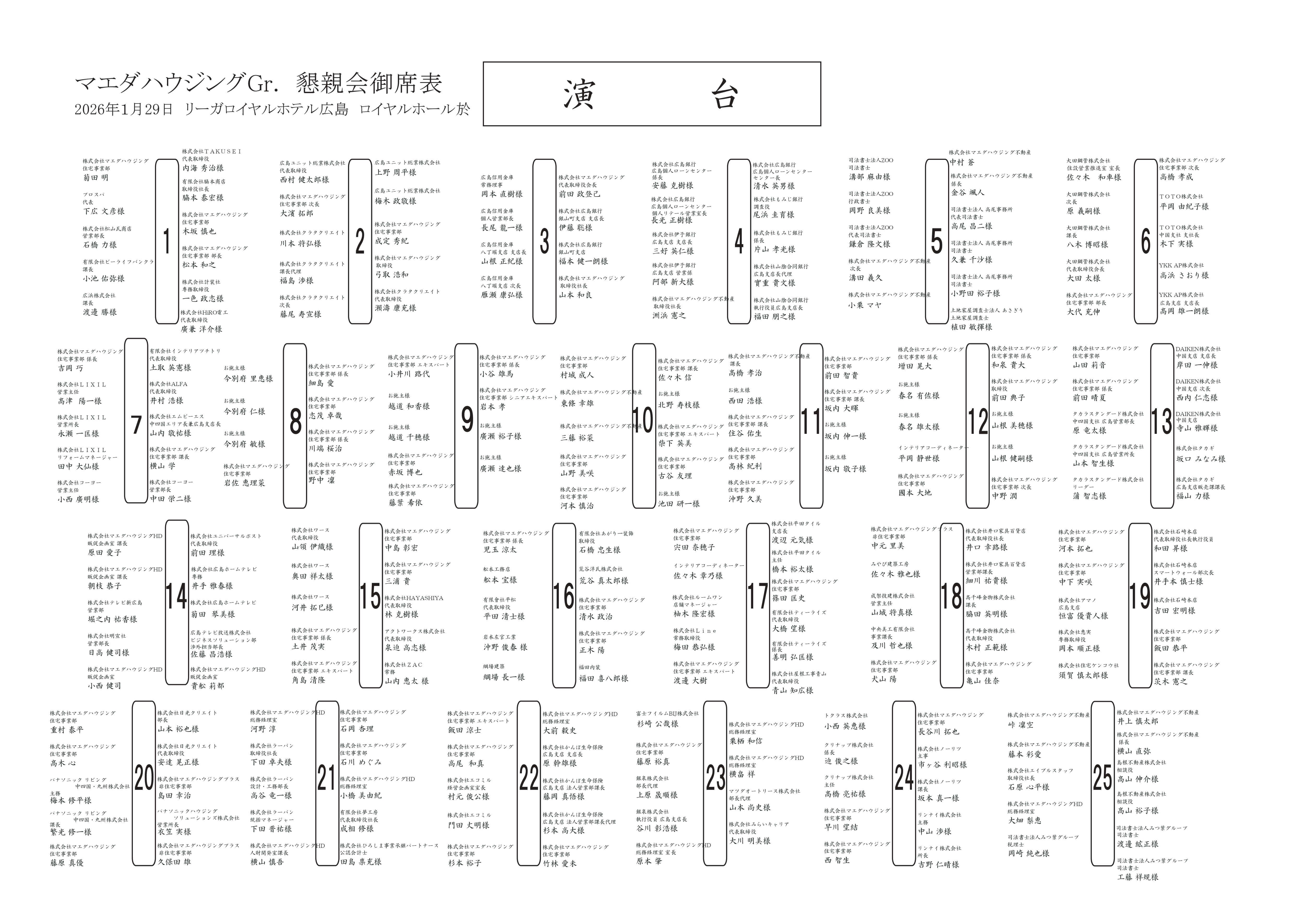 MAEDAHOUSING VISION 2026 懇親会御席表