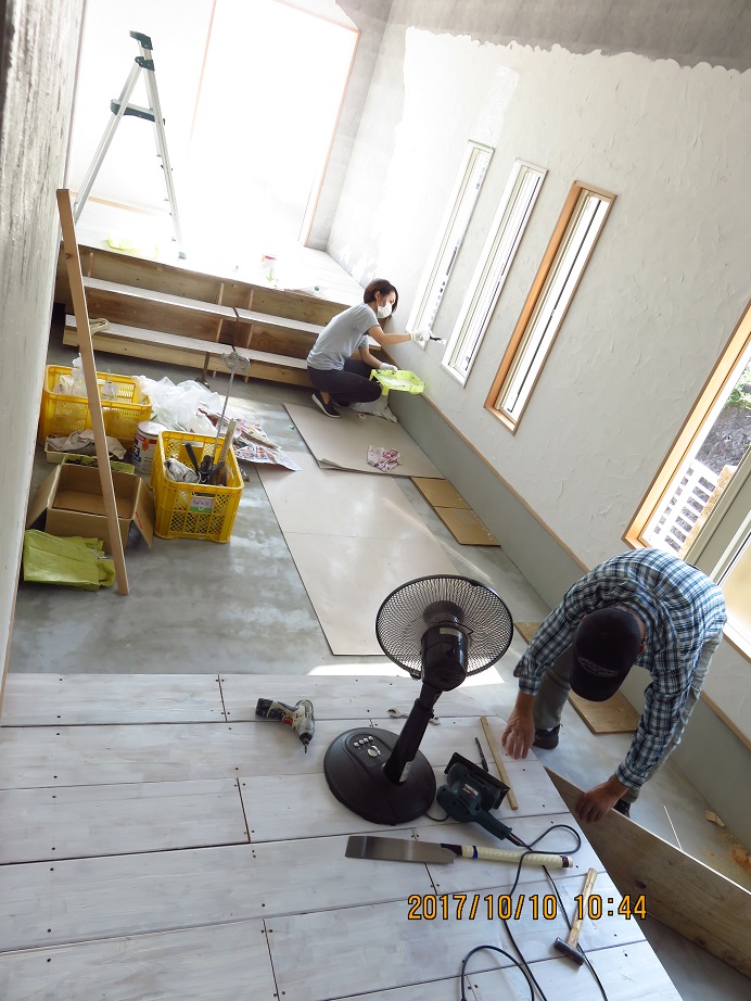 *右写真:この度増築させて頂いた部分でDIYされているスタッフさん。