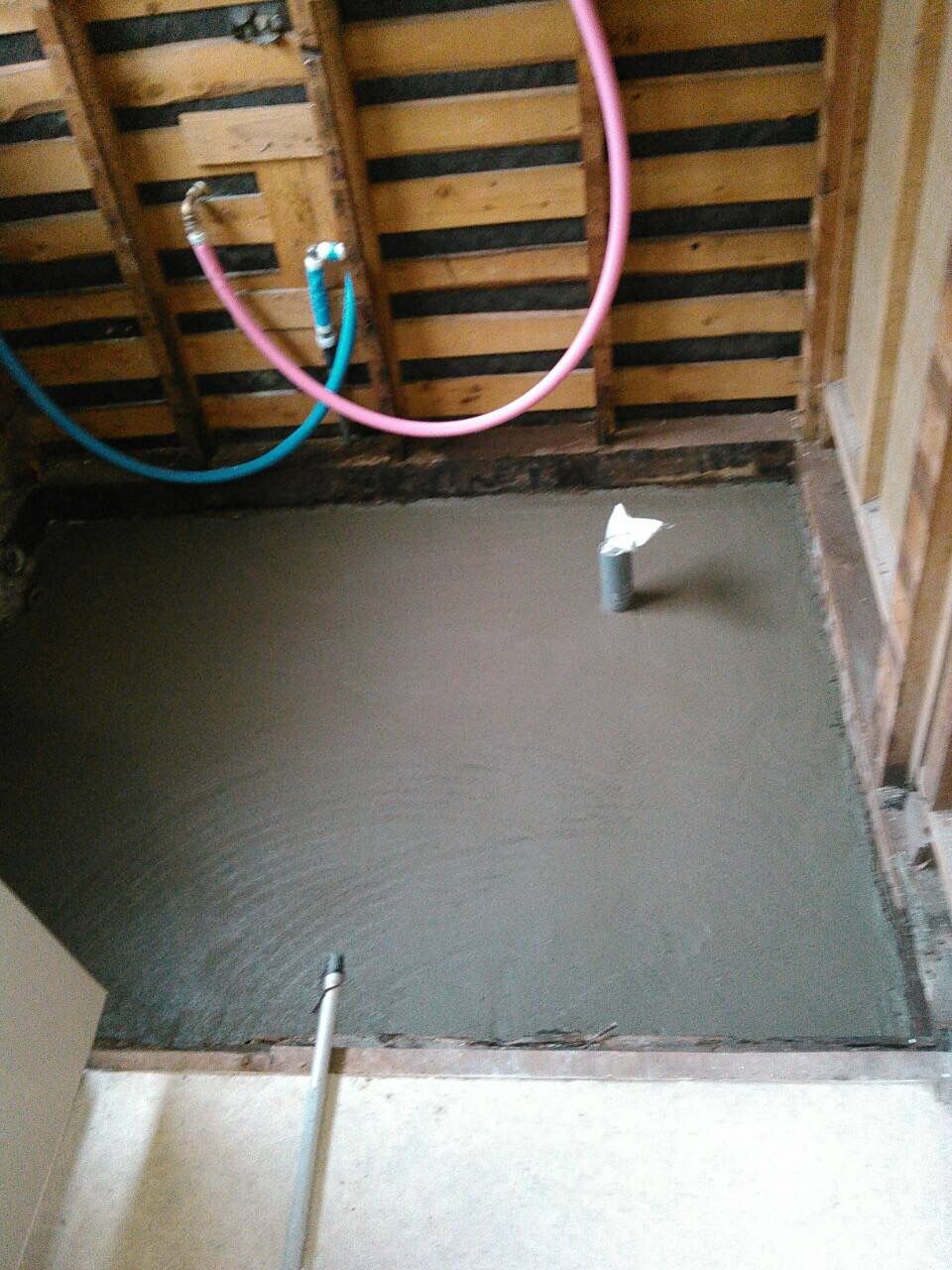 モルタルでユニットバスの土台を整えて初日終了~