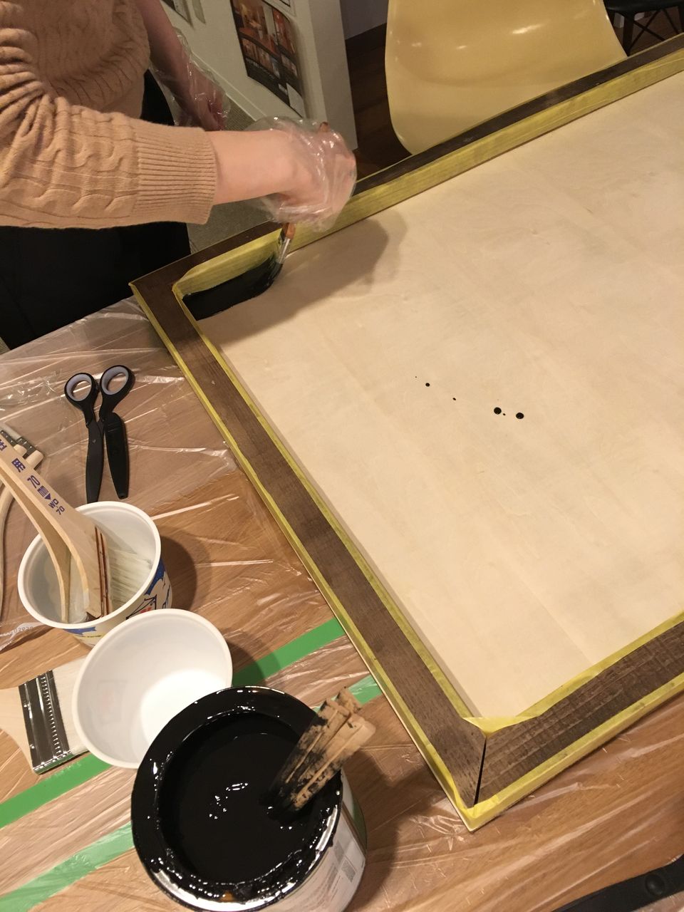 マスキングテープやペンキ、タイルなどで飾り付けしていきます