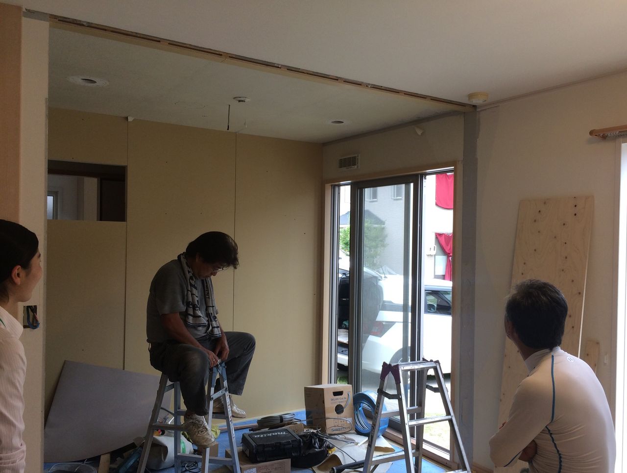 只今工事中ですが、早速和室に間仕切り壁が立ち上がっていて