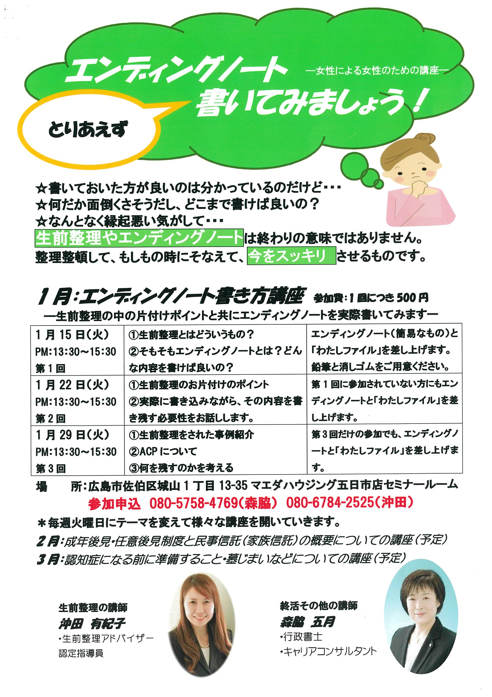 今年から「~女性による女性のための講座~ 生前整理・終活 」
