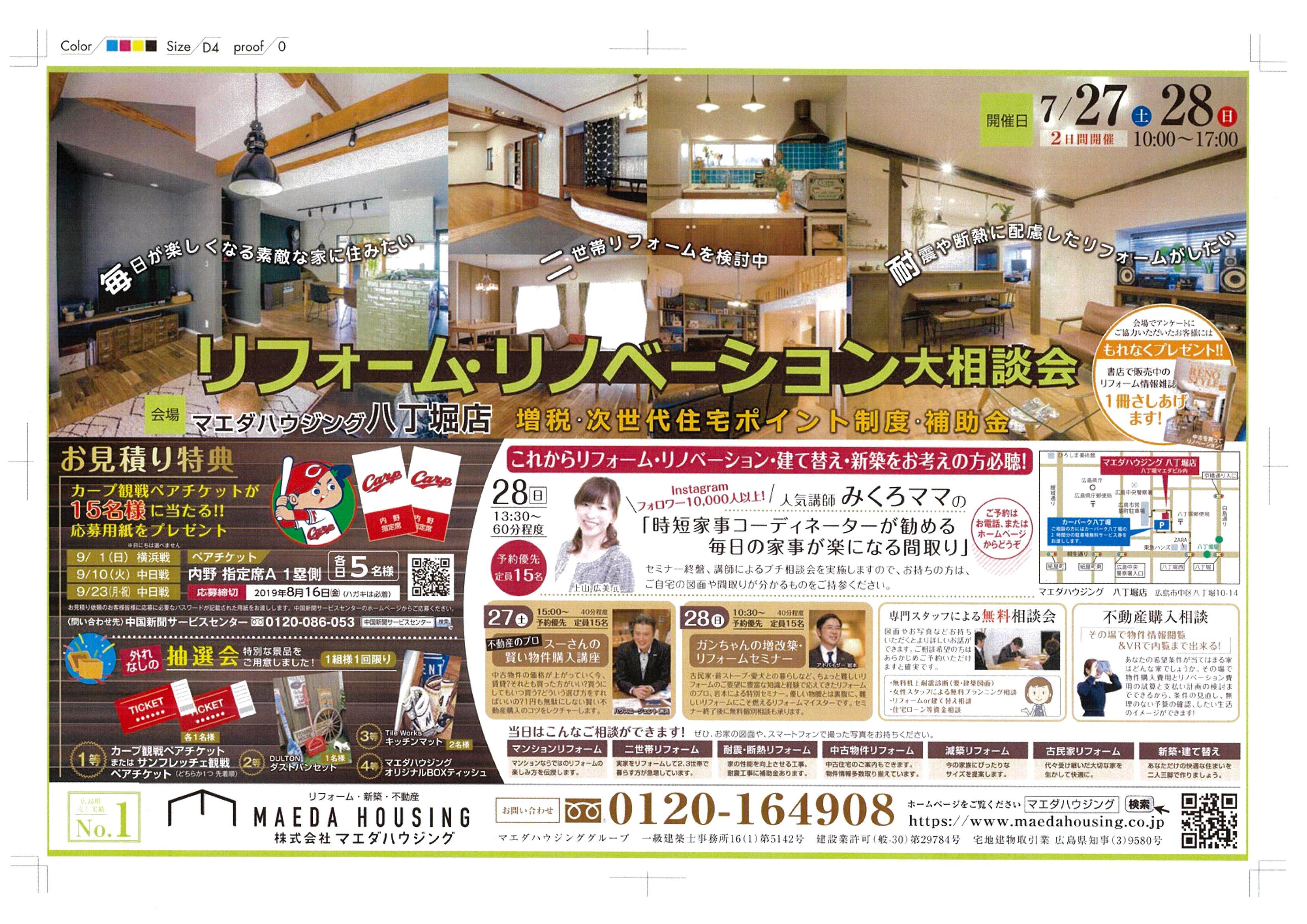 リフォーム以外にも、不動産や人気講師の上山広美さんをお迎えして毎日の家事が楽になる間取りのセミナーもあります♪