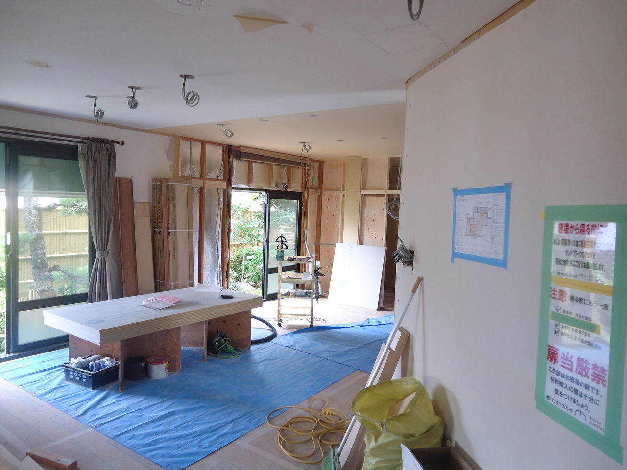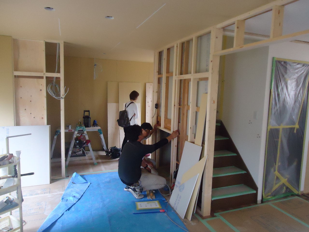 ここで奥様の提案があった壁面にエコカラットという商品を貼りました(#^.^#)