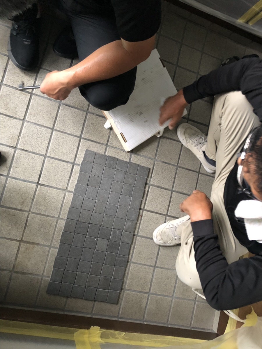 玄関のタイルの割り付けも考えて 工事が進んでいきます。