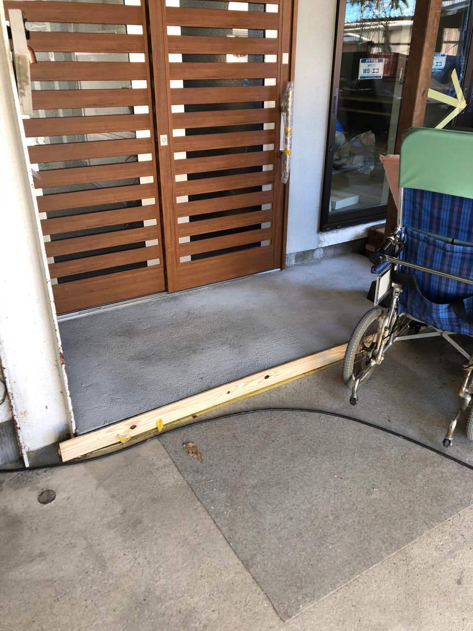 ほぼ大工さんの工事終了  玄関ドアも新しくなり後はタイルを張るだけです。