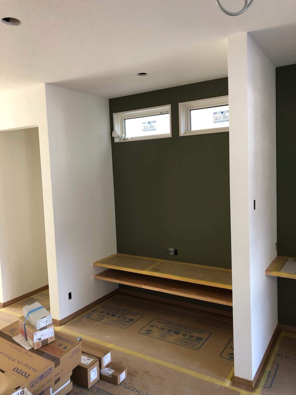 壁紙を貼ったら完成が見えてきました。床の養生を剥ぐのが楽しみです。
